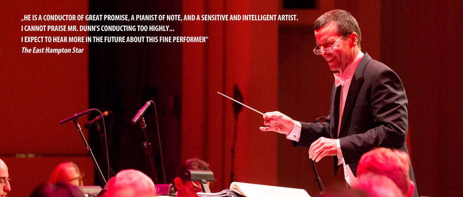 Dunn studied piano with Byron Janis and is former assistant to Lukas Foss. Early in his career, Dunn toured eastern Europe for the USIA playing Ives’ CONCORD SONATA and other American masterworks. He made his momentous Carnegie Hall debut as both pianist and orchestrator premiering his own reconstruction of Vernon Duke’s ‘lost’ PIANO CONCERTO in C.